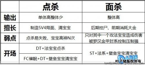 (死亡禁锢往往会成为翻盘的转折之点) 但是从“点”这个字上就很容易知道,点杀相对于面杀而言,对对方造成的整体伤害很少,如果没有两大“禁锢”的话,第二回合死亡的人物就会被宝宝拉起来(或者方寸会等待五色毫毛的激活),带鬼魂术的宝宝可能会被普陀用“莲花心音”拉起等等。另外,既然选择了点杀,就会经常遇到诸如己方点杀的大唐角色中法宝“摄魂”、对方出现自动保护或者物理/法金甲、使用罗汉或者太极护法来防止法系的单秒点杀(以前对付多MTG的方式就是开场给一速封系上太极护法),如果是点杀清攻法宝宝的话,高神也是一件让人头疼的事。 平民点面观 如果说只谈服战场上的点杀面杀格局来言,未免对看这篇文章的众多平民玩家们有失偏颇。所以接下来得一段或许对爱PK但是实力不太强的玩家来说有很大的用处。 对于一般玩家来说,帮战和比武大多是日常最常接触的PK方式,服战场上的玩家的8个宝宝分配上大多是三攻二法三肉左右,但是对于一般玩家而言,能够有1-2只法防肉宝宝就算不错的了。在当今打帮战的玩家大多带5-6个肉宝宝而言,如何让己方的攻击最大化就成了最主要的问题。 笔者的队伍,就选择了150DT+152PT+155HS+138LG+129MW/155ST的虎阵队伍,开场一法防高速肉三死亡高速肉和一中速肉。一方面来说,高等级的双辅助不仅能够让回复尽量多,而且能给队伍一个整体的抗性保证;双面杀门派能够让输出尽量多,通过不断清对方肉宠使对方无法通过宝宝补给自己血蓝;同时有个点杀的DT站虎阵队长位置,配合三个死亡宠,能够让点杀伤害更大,三刀毙命;开场多个高速肉也能够通过吸收对方伤害来让己方的玩家角色有出手的机会,同时高速宠配合自己喂药也能让攻击持续不断的进行。虽然笔者的队伍平均等级在150上下,但是这种严密的配合和点面结合的攻击,大多数情况下还是能够战胜平均等级160左右的队伍。(其实这也说明等级和实力只能算一部分原因,队伍的配合也会占一部分胜负的因素。) 其实总而言之,如果你觉得上面的话太罗嗦,就可以看下面的表 服战玩家有服战玩家的点面观,平民有平民的点面观。在服战点杀主流帮战面杀主流的现在,究竟面杀在服战场上是否卷土重来,配合点杀的方寸在修改之后前景如何,一个月后,大家拭目以待吧 |