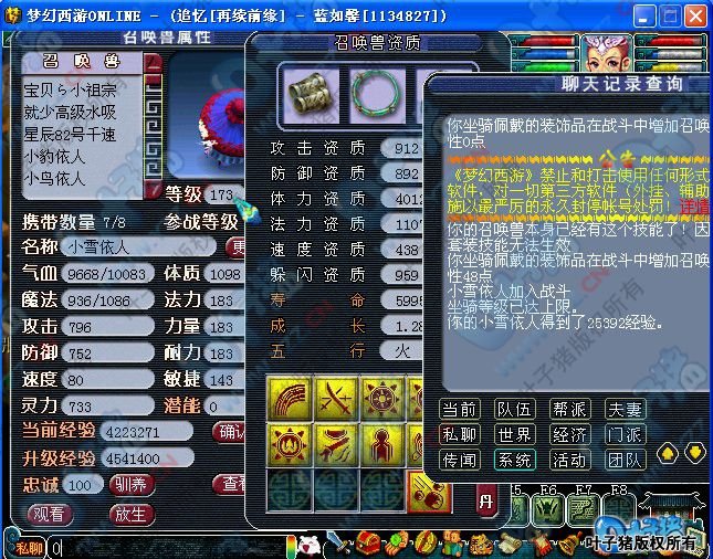 说了这么多,现在进入正题,今天我推荐的方法是—带低级BB做官职。也许很多人会怀疑,带低级BB官职应该基本没经验,因为比如170级的号,带150级的BB抓鬼,种族都基本没啥经验。这确实是这样的,单很多事情,尝试过才知道。 可以肯定的告诉大家,你带低级的BB官职和带高级的BB官职经验时一摸一样的,完全不会减少。我这里官职任务指的是“内政”。比如170级的号带170的BB官职杀次怪2W5经验,带50级的BB,杀次怪还是2W5经验。官职任务BB得的经验和BB等级没关,都是在一个固定范围内波动的。以一般的水平来说,1小时官职,BB得100W经验时很正常的。100W经验对于1只低级,甚至30多级的BB来说,是十分巨大的一笔经验,差不多能升个七八十来级。而人物所得经验没影响。 下面我发图和录像为证: 小馨是个173LG,为了有说服性,我截了携带61,161,173BB杀1次怪所得经验图 大家都看到,得的经验都差不多,这足以证明刚小馨所说,我想大家也明白我的意思了吧。 还有就是带低级的BB,BB很容易死,怎么杀能保证BB不死呢,下面看场我的办法,录像如下: 这是小馨个人的办法,先带1只高速度的功BB,开场大小怪,我群秒,第2回合,高速度BB出手杀主,我换低级BB,第3回合,我单BB防御,结束 我相信各位还有别的办法,而且不同门派可以找出最合适练低级BB的办法。小馨在这抛砖引玉,希望大家能分享下自己知道的点小小技巧。祝各位猪油没游戏愉快! 最后的最后,希望策划看到后别修改这个设置了,不然我罪孽深重!!! |
