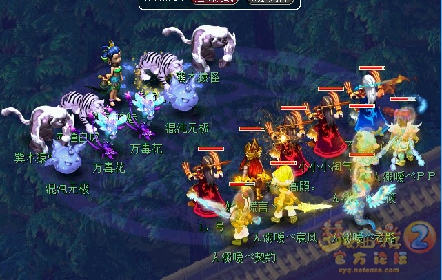 南宴守卫主怪是MW,左右两边的凤凰也是法系的,后排狐狸精是HS门派,前排怪物门派随机,不固定,注意队伍血量恢复就可以了。 西宴守卫,这场战斗大玩点杀,后排的两个BY猿是DT门派,会配合点杀,BY老虎是WZ门派,主怪是HS,会死亡之音,前排可能会有封系辅助物理或者法系等不固定的门派出现。 这场战斗首先把后排的四个变异怪控制住就可以了,当然也要小心前排的,建议大家采用集中点杀的方式来过此战斗,只要打的稳了,就没得问题了~ |