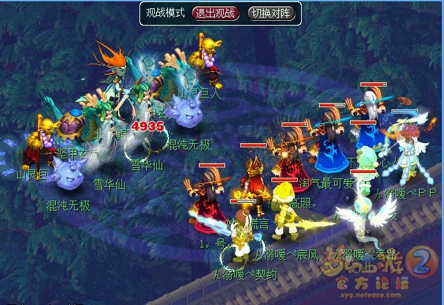 两边雨伞均为MW,会群秒与单秒,法伤一般。主怪为LB,会双连,严重怀疑专打队长..,老鼠FC,打酱油的。葫芦为PS,会勾魂,怪物均无抗性,3回合解决。