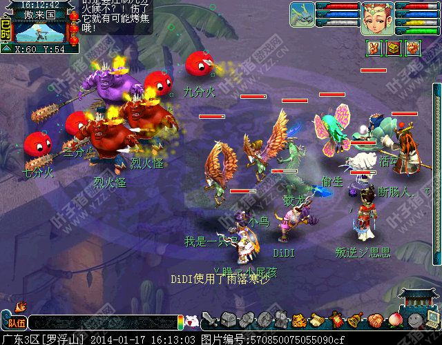 这个按照他的字面意思就是杀掉七分火的泡泡就可以了,不过我们队伍也是全部杀干净,就结束了。主怪为MW,会群秒,法伤极低,左边泡泡为ST,刚变身没出手就飞了,火车会烈火,法伤极低,没压力,2回合解决。