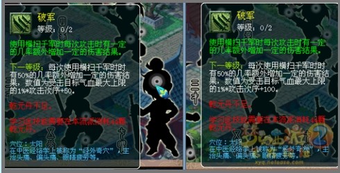 大唐经脉调整 无双战神经脉得到进一步加强。安然愤怒增加提高一点;长驱直入后续效果出现概率提高至15%,但需要冷却6回合;借力效果增加1%;破军效果每刀提高50点伤害。 调整前后对比,左侧为调整前,右侧为调整后,话说现在有四刀的年代还有人选择三刀?(PS:DT是亲儿子吗?就只有这个对比图做得人性化,省了小编好多功夫。)