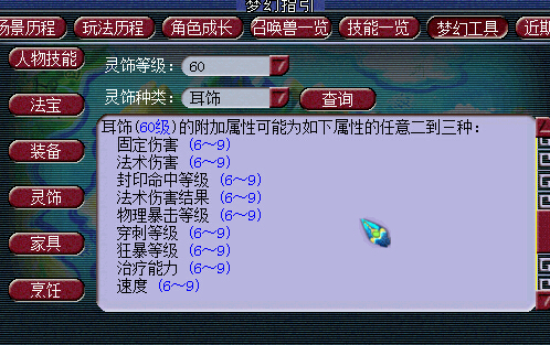 更多攻略:魔化生门派已崛起?输出数据能否说明一切 生命之泉的加血公式为(技能+法修)*1.5,69级技能79,法修9,加血量为88*1.5=132,打WDD符加65点计算,为197点,葫芦加血公式约为等级*6,双九层约能加108气血,为305点 普度众生的加血公式为第一二回合(技能+法修)*3+20,69级技能79,法修9.加血量为88*3+20=284,打WDD符加65点计算,为349,葫芦加血公式约为等级*6,双九层约能加108气血,为457 现在我们来看看灵饰的威力,我们上一张截图,游戏中可以查得到的 我们可以看到,关于加治疗能力的那一栏,显示6-9 我们取极限9 , 最多可以出现三行。(暂且不讨论是否现在有三行治疗能力加9的问题)因此,在没有星辉石的情况下,是加3*9=27的治疗能力,每两级星辉石会把所加的属性效果翻一倍。这样6级的星辉石相当于三倍的所加效果,及单个戒指灵饰可以加27*4=108的治疗能力。 耳饰所加的治疗效果与戒指是差不多的。这样两件灵饰所加的治疗效果(60极限)为108*2=216 这样我们就可以看出,WZ灯的治疗效果为305+216=521 。也许你以为到这里就已经完了。我只能说你图样图森破,接下来还有其他两件灵饰的效果! 接下来是手镯。图片中我们清楚的可以看到,手镯所加的是气血回复效果。不知道大家知不知道,气血回复效果跟治疗效果是不一样的。简单的说,气血回复效果等同于无底洞的符~~~ 即,当你带这种加气血回复效果的灵饰的话,别人给你加血会有加成。同样取极限情况,手镯和配饰能够加216点气血回复效果,所以WZ灯的极限能够加521+216=737 是不是很吃惊?难道69比武 WZ PT要崛起了吗?期待