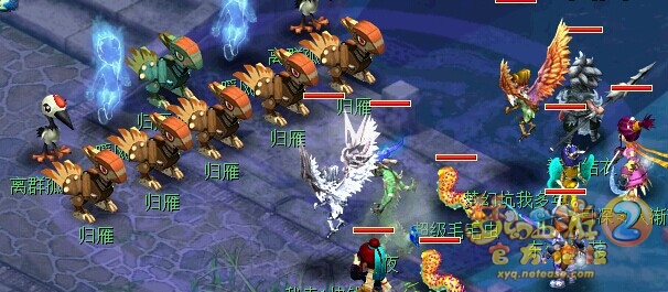 在找仲四妹(198,72)询问八九有什么奇观。鸭子是封,蜃气妖是群秒,机关鸟是各门派混搭。 找九九(210,114)完成九九消寒图。主会破血,幽灵是狮驼,白熊是神木林,野猪精是五庄,修罗傀儡妖是化生,律法各种门派混搭。