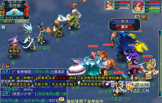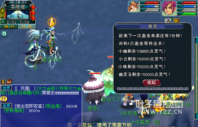 玩家需要在幽光玉灵气耗尽之前,击败3波,总9只蛊虫。每波蛊虫间隔15分钟。 第一波蛊虫——碧血蚕妖〔总共3只〕∶ 小贴士∶ 1,第一波,怪物中。如果你击杀星灵仙子的话,会导致所有怪物全部回满血。 2,最好优先击杀,其他小怪。在击杀星灵仙子,效率会高很多。 叶子猪梦幻西游玩家群:1群 325703083 (2000人),2群: 330102322 (千人);3群: 424986787 (游戏疑难解答);4群: 330518295 (商人物价);5群: 1063086037 (疑难解答);6群: 1045753197 (春心萌动);7群: 787195090 (活跃互动);8群: 720665628 (全民PK)
