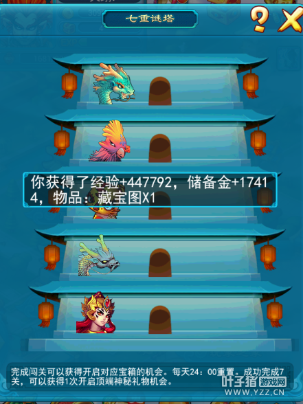 相关文章:2015劳动节活动简介:七重迷塔挑战极限 2015劳动节活动测试攻略,本次先测试多人环式、挑战类、挂机类和单人活动。多人环式比较简单,不过怪的血有点多;挑战玩法稍微有点难度,比较耗时,最后的神秘宝箱的怪比较变态。