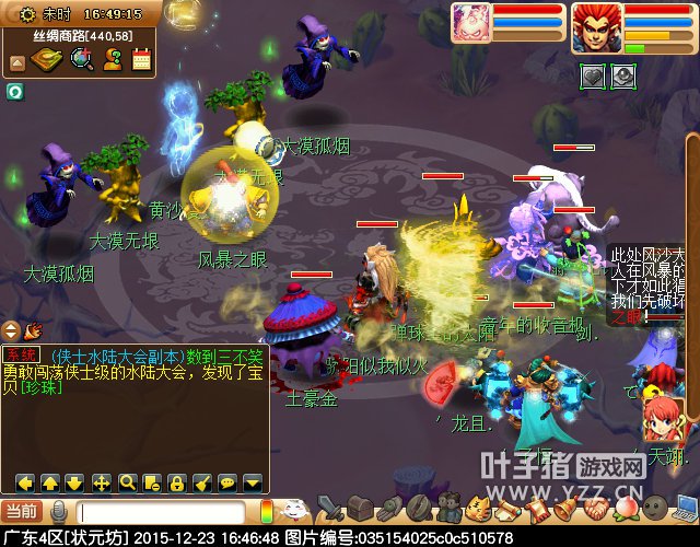 主怪SM,会群秒;树怪ES,野鬼TG,会五雷轰顶,风伯一直都是ST,没出手过,不知变身后会干啥,提示先破坏“风暴之眼”,每隔一回合怪会变动阵位。 |