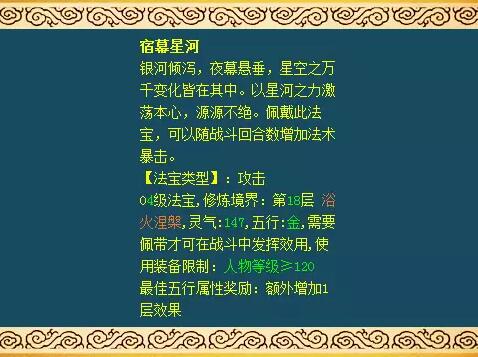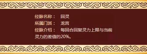 神威龙宫暴率惊人 新资料片开放后,神威龙宫能够获得四级法宝“宿幕星河”!这个法宝的满层效果为增加1%+((回合数-1)/12)%法术暴击率!现在的玩家都喜欢求稳,所以大家的抗性都比较高,想要快速解决战斗相当困难,因此“宿幕星河”这个法宝带来的收益会越来越大,如果再配上法暴灵饰,那龙宫的法暴几率会非常大,伤害也会非常可怕! 天科龙宫不怕天雷斩 龙宫第五层经脉的三个技能分别为戏珠(增加二龙戏珠伤害,数值为(1-当前气血/目标气血上限)*1000)、回灵(每回合回复灵力上限与当前灵力的差值的20%)、月光(装备上月亮石的效果增加40%)。这三个技能中帅编更倾向于回灵,如果被双天宫天雷斩针对过的玩家应该会明白帅编为什么这么选。一旦没有回灵经脉的龙宫碰到双天宫打灵力的战术,真的会“想死的心都有了”,那伤害都不忍心看。