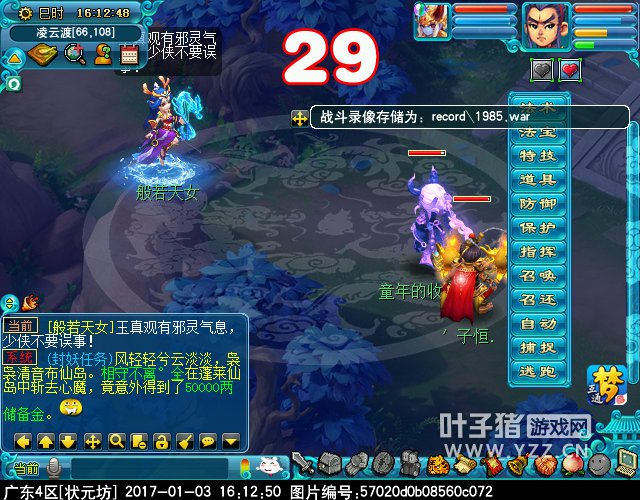 因为小怪都是连体的,所以第一回合级把他们灭了。只剩下主怪,系统提示用聚魂珠,对主使用后,他就直接逃跑了。