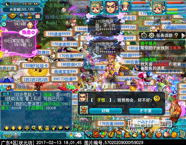 抱抱大赛 参与这个大赛之前首先要一男一女组队,然后由一方充钱买个抱抱动作,或直接在任务人那里领个抱抱的动作,然后开启任务,任务是计时的,所以越快完成越好,才能获得名次。 获得动作后对你的另一半使用,然后对方同意,就可以领取任务了。