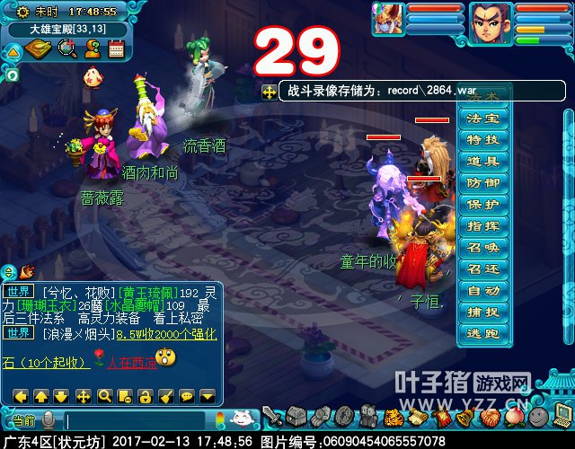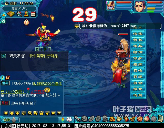 到指定地点点击食物切入战斗,花妖和蚌精都是LB,会裂石。主DT,会横扫。仙子MW,会单秒。