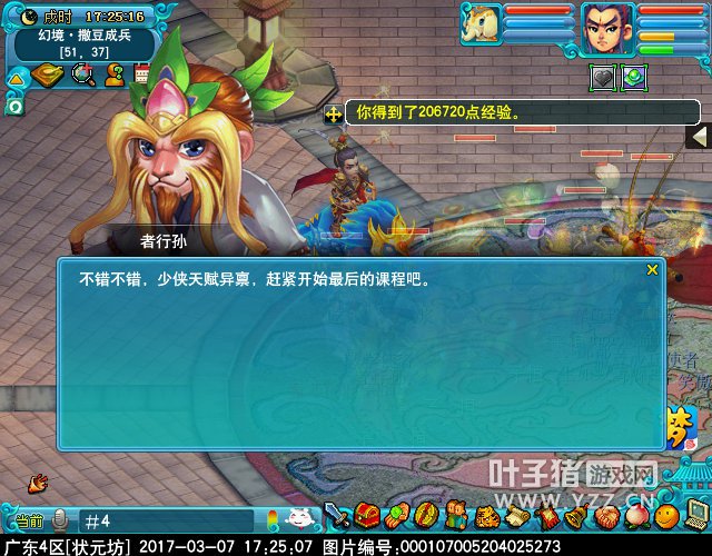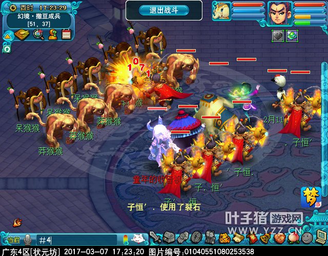 Hello,猪友们,今天小编给大家带来撒豆成兵的玩法评测,这个玩法实际上就是口袋版队友的一个升级版玩法,也就是说,其中四个队友是“假人”,不可控的,但是战斗力和口袋版的对比,渣得不行,然后奖励也是一如既往地渣,体验该玩法可以获得少量经验奖励,获得的积分可以兑换宝图和宝石盒。这奖励也想吸引玩家参与?真不知策划是怎么想的。开发一个玩法然后变成鸡肋,成本都超过期望值了,这难道就是你们想看到的结果吗? 闲话少叙,切入正题。首先通过CA349,111传送使者处进入。 进入之后我们可以看到三只猴子,先跑到最左侧“者行孙”这里设置并体验分身玩法,刚开始是战斗初体验。