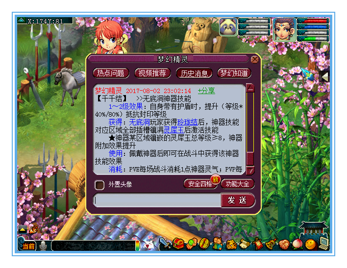 神威无底洞可以解锁第一个神器技能情思悠悠,飞升无底洞不仅可以拥有情思悠悠,还可以在千千结和相思两个技能中选择一个解锁,而渡劫无底洞则可以使用所有的神器技能。现在我们就来详细分析这三个神器技能。