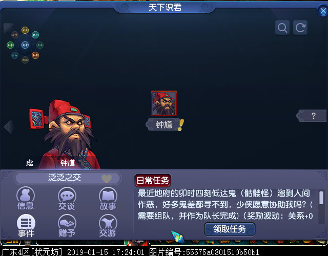 即使还没有完成“天下识君”的事件,因为你与钟馗建交了,帮他抓鬼能提升好感度。