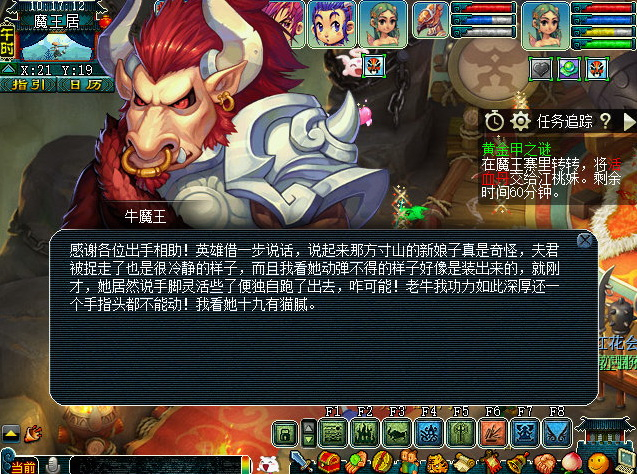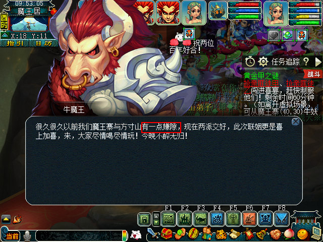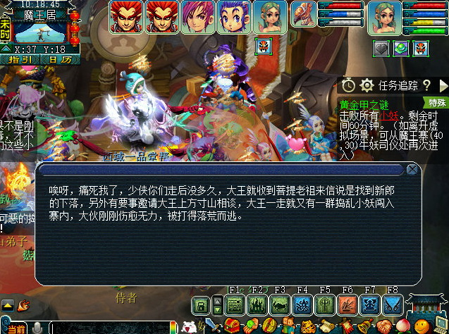 火炉旁最好的位置是“捉猪人”的,呸!说书人的!(为什么不是烧烤匠的,不要在意这些细节) 该收集的也收集的差不多了,是时候出个剧情详解了。其实每个故事并不像表面上看的那么简单,其中还有很多隐晦的东西,比如黄金甲之谜下面我会给大家讲解一些很多人不知道的东西。 剧情详解 有一天,来到方寸山看到张灯结彩彩旗飘飘,从许久不见的觉明大师口中得知菩提祖师爱徒将要嫁给魔王寨大弟子,大伙正准备把礼品送到魔王寨去,正好有一车礼品落下了。当然我们就义不容辞承担了送礼的任务,在从方寸山到魔王寨的途中,我们会遇到一些强盗,这些强盗口口声声要抢“桃妹妹”! 分析:在途中遇到一些强盗,其实是再正常不过的事情,但是战斗结束后的对话就很有意思,他们抢的是“桃妹妹”也就是方寸山的新娘;但是我们只是运送贺礼的队伍,而不是送亲队伍。看上去很矛盾其实已经为后面的故事埋下了伏笔。 一路奔波总算把贺礼送到魔王寨,碰到这种大喜的日子自然就要讨杯喜酒喝, 在喜宴当中与牛魔王闲谈时得知很久很久以前魔王寨与方寸山有嫌隙,现在两派交好,这次联姻算是喜上加喜,亲上加亲了。 分析:“嫌隙”很久很久前,魔王寨与方寸山到底有什么嫌隙呢?这个故事以后在给大家讲! ![]() 正当大家觥筹交错之时,筵中烛火一灭,之前的抢亲劫匪又出现了。而众人此时四肢无力只能眼睁睁看着劫匪劫走了新郎,作为中毒尚浅的我们又一次担起了责任,先去方寸山找菩提祖师问问是否有眉目。 分析:是不是很奇怪,明明从故事开始这些劫匪就是冲着方寸山的新娘来的,结果这次劫走的却是新郎(或许对于劫匪劫谁并不重要,可能另有企图罢了);在宾客正好四肢无力时,劫匪出现也正好验证一件事,在喜宴当中有人跟劫匪是同谋! ![]() 见到菩提祖师后,将喜宴中发生事一一告知。得知我们中的并不是毒,而是方寸山的“截脉符”此符是很久很久前一名方寸山优秀弟子所创,早已失传,菩提祖师觉得此符用处不大也没有研习,自然也没有破解之法,只能让我们去天宫找太上老君碰碰运气! 分析:这名优秀弟子是谁?这次发生的事情难道跟这名优秀弟子有关? ![]() 也算是我们运气好,帮太上老君找来几味药引,成功配置出能够治疗“截脉符”的活血丹。回到魔王寨帮大家服下活血丹后,被牛魔王请去借一步说话,从牛魔王口中得知,在我们走后不久,方寸山新娘已自己中毒不深,手脚灵活一些为由,独自跑去寨外打听夫君下落。他怕新娘其实打探他大寨的秘密去了! 分析:牛魔王功力如此深厚,也是一个手指都动弹不了,而这个新娘在我们走后,手脚灵活明显有问题! ![]() 听完牛魔王一席话后,我们以送药为由在寨中找到了这个新娘,而我们发现她的时候,可以注意到地上满是洞,树上也是。她告诉我们她吃的少,所以中毒不深先出来找夫君的线索,但一无所获,过会想找神仙帮忙,既然都来了我们也帮个忙找南极仙翁问问! 分析:注意到满地都是洞的时候,可以明白新娘压根没有中毒,中了毒的人哪有那么多力气挖的满地都是洞,甚至树上还有;这个新娘压根不是来找新郎的,而是在魔王寨找某样东西,而她并不知道这样东西在哪里,所以才会挖的满地都是洞。 ![]() 询问南极仙翁后,仙翁只是告诉我们心中不是早已有了答案!既然证实了我们之前的怀疑,重新回到喜宴当中。正好在我们出去时,喜宴当中杀出了一群小妖,由于众人刚服用了活血丹,手脚无力不敌只好落荒而逃。听了众人的话后,找到这些小妖然后发现我们也打不过,只好屁颠屁颠找菩提祖师求援。 ![]() 又找人家帮忙,先是被人吐槽了一番。然后得知这些小妖很可能是方寸山的纸人符,这纸人符又是之前那名优秀弟子所创,但是这名弟子早已去世。不管如何只要拿着火咒符就可以轻易处理掉这些小妖。 分析:又是那名弟子!虽然菩提祖师说了那名弟子早已去世,但是失传的截脉符和纸人符依次出现,无非两种可能;第一种,那名弟子并没有死,还活着,所谓的死也只不过假死;第二种,这名弟子生前把自己所学传授给了别人。至于是哪种可能,以后的故事再告诉大家。 ![]() 有了火咒符,轻松解决这些捣乱的小妖。将这些写满符文的纸片,给筵席当中的一个方寸山弟子看后,得知确实是失传的纸人符。他还证实之前方寸山的新娘的确在魔王寨中寻找着什么东西,听到这件事后我们也是毫不犹豫找到她,她竟然跟我们装蒜,说是在看风景。既然你那么喜欢装,我们就使用了最擅长的技能尾行,看看她到底在找什么? ![]() 尾行方寸山新娘江桃妹来到寨外,越来越远!有点不太对劲,一代尾行大师,又一次丢人中了调虎离山计(为什么又一次呢,不要在意这些细节,反正又不是第一次丢人了),江桃妹把我们引到了早已等候她的弟子那里去了,而自己偷偷的又潜回了魔王寨。不管如何至少从接应她的弟子口中得知,江桃妹在魔王寨找一个宝物,为了防止有人阻扰,就让他在此把我们引走。 ![]() 气急败坏的我们回魔王寨找江桃妹算账,一阵打斗过后,江桃妹无奈坦言,她是为了找寻方寸山的宝物“黄金甲”,这黄金甲是上古神灵遗留下来的,但一直不知所踪,本来以为是传说,听听就算了,可是… … 分析:这里提到一个名字“上古神灵”,这边可以告诉大家,神器并不是凭空出现的。而都是上古神灵遗留下来的,后面的故事还会讲到上古神灵的。 ![]() 原来在大婚前夕