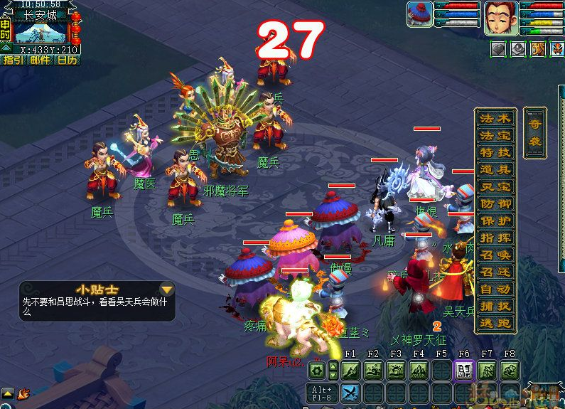 一、任务介绍 时间限制:领取时间为8:00-24:00,且需要凌晨1点前完成。 领取条件:神器任务·起:已飞升或已完成神器任务序章,5人组队。 神器任务·转:已飞升5人组队,队长完成过神器任务·起中队友的神器任务。 神器任务·合:已飞升且已完成神器任务序章。领取NPC: 1、找杨戬(凌霄宝殿55,26)领取神器任务起与转。 2、找传令天兵(长安217,169)领取神器任务起与转,需消耗20点体力/人。 3、神器·合照轩辕(大唐境外170,111)领取任务。 二、队伍配置 低难度其实配置无所谓,本身这个神器任务战斗不难,高难度建议队伍中封系和辅助速度快一些,防止出手前被对面笑里,导致晶清罗汉这类特技接不出来。 三、任务流程 领取神器任务后,在地府找到牛头,询问一番后,再找到看守小妖。 与看守小妖对话结束后,在地府场景内找到牛头弟弟和八个看守小妖(NPC位置随机,可使用天眼通符)。 找到所有NPC后,进入地狱迷宫一层,到指定坐标点击大鼎,进入鼎中。 在场景内,可以看到一个魔族女孩在被一群仙族孩子排挤,触发本神器第一场战斗。 仙族小孩:门派五庄,使用完生命之泉后,对魔族女孩使用特技吸血(无限神佑)。 无敌帮手:门派普陀山,开场释放特技罗汉金钟,后续回合对仙族小孩使用普度众生(无限神佑)。 无敌帮凶:门派普陀山,开场释放灵动九天,后续回合对仙族小孩使用自在心法(无限神佑)。 同伴:对魔族女孩使用特技破血狂攻。 战斗思路: 优先集火掉同伴,然后控制仙族小孩血量,仙族小孩血量低于一半,所有单位逃跑。 战斗结束后,传送回地狱迷宫一层,与吴天兵对话,吴天兵支支吾吾有所隐瞒,去天宫守门天将处打听消息,然后与天宫场景内的12个NPC对话(打开小地图(TAB键),勾选全部,屋子外面的NPC全都是)。 再次回到守门天将处,根据提示购买5个召唤兽(替代召唤兽会让战斗难度提升,但提升幅度很小,建议买替代省时间)。 与守门天将对话,进入偏僻一角,在场景的5个阵台处摆放召唤兽。 注:只需要提交代表对应五行属性的召唤兽即可,对提交的召唤兽本身的五行是没要求的。 以下阵台位置: 将召唤兽全部摆放完成后,触发本神器第二场战斗。 金身罗汉:门派普陀山,物抗较高,每回合使用剑意莲心,击飞2个小怪后,只会平砍,击飞3个小怪后,无法行动,击飞5个小怪后,自身获得全属性100%易伤BUFF。 天兵、天将:门派天宫,每回合使用雷霆万钧,法伤较高。 蜃气妖:每回合使用地狱烈火。 灵符女娲、幽灵、踏云兽:门派凌波城,以使用裂石、断岳式和惊涛怒为主。 芙蓉仙子、星灵仙子:门派普陀山,使用单秒五行法术,伤害忽略不计。 战斗思路: 1、优先集火掉前排3个凌波城小怪,让主怪无法动弹。 2、封系优先封印后排蜃气妖,天兵、天将是天宫小怪,很容易出现法术闪避,不容易中。 3、队伍中封系和辅助如果法防较低,抗不住对面的法系群秒,可以神变一个瑶池仙女·火来吸收地狱烈火的伤害。 4、击飞前排小怪后,再击杀后排小怪,最后再击杀主怪,战斗总体难度不大。 战斗结束后,传送至天台,在天台下方找到吴天兵,触发本神器第三场战斗。 吕思:门派天宫,第一回合不行动,同时拥有神佑,第二回合开始,失去神佑效果,使用雷霆万钧和烈火技能,雷霆万钧拥有秒杀吴天兵的效果。 蝎子精:平时使用地涌金莲,当吕思、大力金刚血量较低时,对其使用舍生取义。 大力金刚:门派狮驼岭,变身后较大概率使用鹰击,小概率使用象形。 狂豹:只会使用壁垒击破,物理伤害较低。 战斗思路: 1、封系优先封印主怪,连续点着主怪封印2回合保证吴天兵的生存,吴天兵从第3回合开始,每回合都会帮你秒杀1个蝎子精。 2、输出需优先集火大力金刚,大力金刚抗性不高很容易被击飞。 3、剩下的狂豹伤害可以忽略不计,战斗总体无难度。 战斗结束后,此时会出现两个分支选择。 注: 分支一,有弹琴小任务,需要玩家配合方可完成。 分支二,可跳过弹琴任务,玩家可以直接完成。