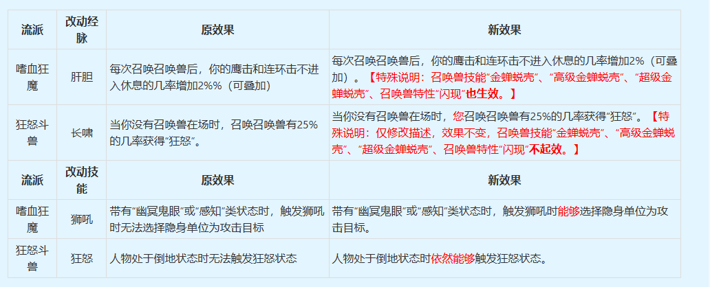 2025年10月的门派调整,为狮驼作为物理面伤的能力进行了查漏补缺。本次调整虽然调整的不多,但是经脉和门派技能方面全部都是加强和修复之前存在的部分情况下导致狮驼经脉不生效的问题,使得狮驼岭在战斗中输出更强力,战术更多变。 (注:本文为基于目前测试版本做出的个人推荐,如全服版本出现微调,请留意论坛攻略版块的后续更新。) 一、各流派经脉调整文字版详情 二、各流派经脉推荐 ①噬血狂魔 1. 纯挂自动鹰击流 这套经脉点法适用于喜欢挂机的玩家: 第一层【爪印】,只要战斗超过3回合就有收益; 第二层点出了【化血】,为了配合【九天】增伤,能保证一定的输出量,如果队伍中有恢复,第二层也可以选择中间的【宁息】。 第三层则选择了【鹰啸】,其他两个经脉更偏重于PK; 第四层选择了【九天】增伤,作为挂机鹰击的核心; 第五层则选择了【狂袭】,【怒火】和【癫狂】都需要手动操作,与这套经脉纯挂机鹰击的理念不符,而且与怪物战斗的过程中反震不少见; 第六层选择【乱击】,作为单点目标的备用方案,在队伍治疗强力或者自身能够控制的情况下,也可点死地用尸战提高输出,整体属于保底伤害且中规中矩的经脉配置。 2. 手动操作收益流 对于追求更高收益且不介意手动操作繁琐 的玩家,这里也提供一个点法。 第一层推荐右边【驭兽】,虽然只有3%的加成,但对己方所有召唤兽生效,想象一下多达40只宝宝同时受益的场景,其提升效果非常可观。 第二层【宁息】可提高续航能力,确保在战斗中能持续输出。第三层中间的【鹰啸】可提高这一层天赋都偏重pk,另外两个天赋更偏向于一些特定战术,所以这里选择了更通用的中间。 第四层右边【协战】对所有伤害加成,上限更高,下限也不低,而且由于奇袭的加入,触发奇袭后的技能都是单体,协战的加成同样可以获得,能在各种战斗场景中发挥优势,如果是长久战中,也可以选择中间的新【展翅】,因为加强后的【展翅】在风天气下的加成也是所有的物理攻击,这个在触发奇袭后更加暴力。第五层选择了【狂袭】,怪还是有反震的! 而第六层【乱击】,连环击不取消变身还是更加好用,在PK中【肝胆】也是能看见的新套路的核心经脉。 ②万兽之王 最近挺多人推荐这个流派无消耗打图,似乎开辟的狮驼新的就业方向。 第一层选择右边的【图腾】,因为人物伤害在战斗中至关重要。 第二层选择中间的【育养】提高小狮子的生存能力,小狮子作为此流派的特色之一,其生存能力的提升对整体战斗表现有很大影响。 第三层在【护盾】、【狂化】必杀、和【矫健】高偷(虽加成高,但有气血限制)中,选择中间的【狂化】必杀加成稳定,能在关键时刻提供稳定的输出加成。第四层选择【九天】,【协同】加成需要敌方处于封印状态,有前置条件,而【嗜血】是纯PK天赋。 第五、六层则选择右边的【钢牙】和【救主】,在PK中第六层则建议点【逞凶】,因为在长时间战斗中收益更高,能更好地应对PK场景中的各种挑战。 希望有大佬开发这个流派,提供更加丰富的玩法。 ③狂怒斗兽 日常任务推荐经脉如图所示。此流派以“狂怒”为核心机制,经脉调整进一步强化了这一特色。 第一层【焦躁】可使触发狂怒几率翻倍,大大增加了“狂怒”状态的触发频率,也可考虑右边【横眉】,根据自身情况灵活选择。 第二层建议还是【忿忿】,有防脸黑机制,利于狂怒触发。 第三层这里选择的是【暴怒】,进一步提高触发狂怒状态后的伤害加成,让触发狂怒像凌波有超级战意一样伤害超高。 第四层【九天】,若上一层选【暴怒】,这一层就选【九天】,两者搭配合理,能提升输出能力,而中间的【撕裂】个人理解更偏向于PK,需要有能提供护盾的机制(如法宝、队友)配合。 第五层我选的是【狂袭】,反震还是要防一下。 第六层我选择的是【怒火】,为持久战提供滚雪球的伤害加成能力。 PK天赋建议如上: 第一层选择【焦躁】,提高核心机制的触发。 第二层则选择了【激变】,触发狂怒需要变身的时候没有变身导致要花费一回合变身,目前有奇袭法术,可以变身再鹰击,但是触发狂怒又没有变身的时候刚好出现奇袭的几率还是有点小,而且奇袭可以使用狮搏+鹰击的组合。 第三层我这里选择的是【暴怒】,相当于触发狂怒可给自己打必杀,更加暴力。 第四层我这里选择的是【撕裂】,因为我队伍中有无底洞和奶神木,这个经脉需要有无底洞或者奶神木等有稳定加护盾技能的辅助配合才有效,如果队伍中没有对应的辅助,【协战】也是不错的选择。 第五层【狂袭】。防止坠机。 第六层【怒火】,频繁的狂怒触发可以带来更高的伤害加成,滚雪球效应。 三、总结 2025年10月的门派调整经脉加强,和部分师门技能的修正,为狮驼岭各流派的伤害能力进行了强化,也让狮驼这一传统物理的面伤能力持续勇猛,在多攻组合中有无法撼动的地位。 特别说明:本文仅代表个人观点,不代表游戏或官方论坛立场。 叶子猪梦幻西游玩家群:1群 325703083 (2000人),2群: 330102322 (千人);3群: 424986787 (游戏疑难解答);4群: 330518295 (商人物价);5群: 1063086037 (疑难解答);6群: 1045753197 (春心萌动);7群: 787195090 (活跃互动);8群: 720665628 (全民PK) [编辑:百晓生]