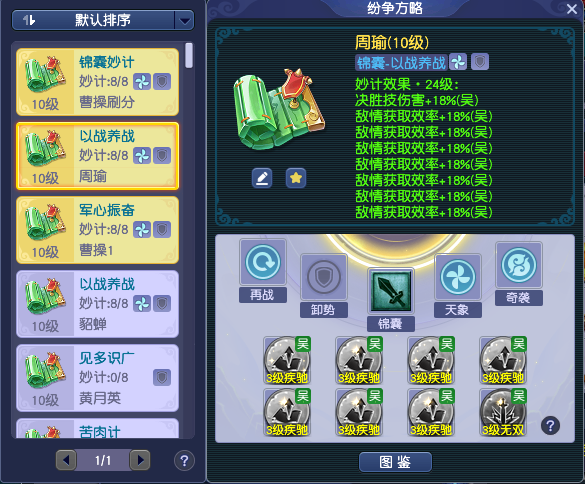 山河画境第六赛季「三国」上线后便收获众多玩家喜爱,四大武将各有特色,技能设计高度贴合人物本身的经典特质。 其中周瑜作为吴阵营的决胜流派核心,主打群秒爆发+敌情资源循环,玩法围绕敌情运营、决胜技「船如箭发」群秒、火区叠层增伤展开,操作感与输出上限拉满;核心资源「敌情」为输出能量,通过法宝与技能积攒满额后,即可释放决胜技打出大范围伤害并生成火攻区域,搭配焦金、摧枯等技能实现火区越多增伤越高,配合敌情回复机制更能达成连续大招的极限爆发。该流派爆发节奏凌厉、群怪清场能力顶尖,十分适合擅长资源把控、追求高频大招与群秒烧双快感的玩家选择。 一、核心机制(必懂) 1. 专属被动&核心决胜技 火烧赤壁【专属被动】:释放法术时对地面施加「火攻」状态(持续4回合,至多叠加10层);回合开始时,2层及以上火攻的区域触发「焚营」,对区域内及左右两侧敌人造成高额法术伤害(战斗中可开启左侧提示界面,查看火攻状态层数)。 船如箭发【核心决胜技】:消耗100点敌情召唤东吴楼船,进行3轮火箭齐射,每轮对5个敌方目标造成法术伤害;对火攻区域内的单位额外提升伤害,是周瑜流派的核心输出手段。 2. 核心道具搭配 锦囊选择(分档推荐,适配不同玩法需求) 毕业首选:以战养战:消耗敌情后,立即获得当前上限×(锦囊生效次数×5%+10%)的敌情(至多40%当前上限),叠满后可实现无限大招,是冲层速刷的最优解。 次选推荐:克敌机先:初始即拥有100点敌情,进入星芒之海、魔焰之地、陷阵之试等特定战斗时敌情回满至上限,配合统揽、百战技能可达成大招循环,上手难度更低。 备选:苦肉计:技能含「风/火」的召唤兽受击后,自身伤害永久提高2%(不含弱点火、套装技能,至多99层),搭配4只带地狱烈火/烈火的高神凤凰,前期叠伤后期爆发,低成本易成型。 妙计镶嵌(核心围绕敌情获取+大招增伤) 周瑜流派妙计仅需两类核心选择,无需复杂搭配,平民/大佬按需选择即可: 核心镶嵌1:疾驰:提升敌情获取效率,加快大招积攒速度,是实现敌情循环的基础。 核心镶嵌2:无双:直接提升决胜技「船如箭发」伤害,拉高输出上限,适配追求爆发的玩家。 组合妙计(2大核心,拉高前期战力) 急攻:每场战斗首次造成伤害时,本回合伤害提高50%,起手爆发核心,适配所有玩法配置。 倍发:分「下/中/上」三档,可放置对应等级任意妙计,本次探险获得该妙计4倍效果(例:放置1级疾驰6%敌情获取,进场后直接变为24%),是顶配玩法实现无限大招的关键。 二、战前最优配置(分档适配,平民/大佬全覆盖) 1. 顶配冲层配置(以战养战核心,无限大招流) 锦囊:以战养战 妙计镶嵌(一): 7个3级幸运疾驰+1个3级幸运无双(敌情获取拉满,兼顾大招伤害) 组合妙计:倍发·下(放置1级疾驰) 核心效果:释放6次决胜技能后叠满锦囊上限,配合倍发4倍疾驰效果,实现敌情无限回复,达成真正的无限大招。 妙计镶嵌(二): 平民玩法:确保消耗敌情后,可立即获得50点敌情,配合技能百战或统揽便可实现无限大招,推荐镶嵌3/4/5/6个2级幸运疾驰+5个 2级或3级幸运无双。 组合妙计:倍发·下(放置1级疾驰) 核心效果:释放6次决胜技能后叠满锦囊上限,配合倍发4倍疾驰效果,搭配技能百战或统揽便可快速实现无限大招。 2. 平民易上手配置(苦肉计核心,低成本叠伤流) 锦囊:苦肉计 妙计镶嵌:推荐8个2级幸运疾驰或4个2级幸运疾驰+4个2级幸运无双(低成本快速积攒敌情,搭配技能统揽/百战释放大招)下图仅供参考,可随意搭配。 组合妙计:急攻 召唤兽搭配:4只带地狱烈火/烈火的高级神佑凤凰(前期受击叠伤,后期满层伤害爆炸) 3. 新手入门配置(克敌机先核心,大招循环流) 锦囊:克敌机先 妙计镶嵌:推荐6个2级疾驰+2个2级无双(平衡敌情获取与大招伤害) 组合妙计:急攻/倍发 核心技能:必拿统揽或百战(提升敌情上限+减少决胜技消耗),轻松实现大招循环。 三、核心技能选择(围绕火攻增伤+敌情运营,必拿/优选明确) 周瑜流派技能选择核心围绕火攻叠层、火区增伤、敌情运营、大招强化展开,舍弃无用防御技能,全力拉满输出与资源循环能力,技能优先级清晰: 必拿核心技能 焦金:每层火攻使区域内敌人受伤害提升20%,火攻叠层的核心增伤技能,灼烧伤害天花板。 摧枯:每存在一个火攻区域,友方单位伤害提高16%,火区越多增伤越高,全屏火攻的关键。 统揽:敌情上限增加50点,为无限大招提供基础资源支撑,必拿。 武备:「船如箭发」额外齐射2轮,直接提升决胜技输出次数,大招伤害翻倍。 优选进阶技能 总攻:决胜技伤害提高100%,短期爆发拉满,冲层打BOSS必备。 侦察:回合开始时每拥有10点敌情,友方伤害提升6%,敌情越多增伤越高,适配无限大招流。 助势:释放法术时火攻层数额外增加1层,加快焚营触发,叠层效率翻倍。 船队:释放「船如箭发」后下一回合,以200%伤害再进行一轮火箭齐射,补伤+清残血必备。 避坑技能 慎选「锦囊」技能(随机获得同等级能力,如果开出反噬、阴阳击、入魔等翻车技能可能导致最终失败,但其实也是冲分神技,想挑战42阶通关榜,可考虑选择。新手阶段求稳可直接舍弃,避免影响输出节奏。 四、实战操作指南(亲测干货,从开局到通关全流程) 核心操作思路 全程围绕「攒敌情→放火攻→放大招→叠增伤」 循环,前期快速积攒敌情实现首次大招,中期叠火攻层数+拿增伤技能,后期满配实现无限大招,全屏清场无压力。 分步实战操