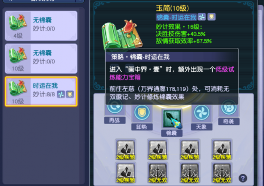 梦幻西游山河画境第六赛季「三国」上线后便收获众多玩家喜爱,四大武将各有特色,技能设计高度贴合人物本身的经典特质。 其中周瑜作为吴阵营的决胜流派核心,主打群秒爆发+敌情资源循环,玩法围绕敌情运营、决胜技「船如箭发」群秒、火区叠层增伤展开,操作感与输出上限拉满 下面为大家带来周瑜速刷16层心得,锦囊选择,低成本只用粮草刷的,四天气,熊虎之力,时运在我。 这里我比较喜欢时运在我,进去先拿一个箱子,也能出高级技能。运气好先拿一个增伤的,前期就好过了。 高成本毕业用以战养战。 入场妙计选择,倍发无双,增加大招伤害,或者是急攻,现在的物价一般30多粮草就能拿到。 每一个门的选择,周瑜没有特别怕的怪,什么怪都能打,量力而行。前期技能好就多选红门拿高级技能,感觉有点悬,就选蓝门,先通关为主。 技能选择,周瑜主要有两方面,一个是敌情的获取,必须保证两回合内开出大招。 重点就是百战、审问、先机、统揽,这四个可以无脑选。基本选了审问以后,遇到蜃气妖或者蝎子精,也可以无限开大招,遇到吕布也好打。 另一方面是叠加大招的伤害,必须保证伤害够高。 重点就是焦金、摧枯、武备、船队这几个无脑选。 其中摧枯是最强的增伤技能,放大招之前可以先打几个火增伤。 还有就是通用的增伤技能。 相比曹操流派,周瑜需要的技能比较多。不熟练的话,经常出现控不好敌情,选不到审问、先机、百战,导致三回合才能一个大招,也会翻车的。 甚至有必要的话,专门留一个小怪,叠一下敌情再进下一关。 BOSS的话,周瑜没有特别怕的,我有次选两个武备,大招齐射七轮,一回合就把蝎子精莽死了。 当然如果你氪金,洗一个以战养战,那完全就是两个游戏了,不需要考虑控敌情,技能全部选增伤,随便过。 叶子猪梦幻西游玩家群:1群 325703083 (2000人),2群: 330102322 (千人);3群: 424986787 (游戏疑难解答);4群: 330518295 (商人物价);5群: 1063086037 (疑难解答);6群: 1045753197 (春心萌动);7群: 787195090 (活跃互动);8群: 720665628 (全民PK) [编辑:莫听雨]