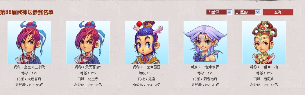 相关文章: 甲级进入明天决赛的队伍为:流花湖代表队、卧龙岗代表队、三潭印月代表队、世界之窗代表队、蝴蝶泉代表队、河姆渡代表队、雄鹰岭代表队、朱紫坊代表队、洞庭湖代表队、八仙过海代表队、灵隐寺代表队、晚芳亭代表队、花果山代表队、慈光阁代表队、神农架代表队、西岳华山代表队 乙级进入明天决赛的队伍为:梦回望月代表队、苏堤春晓代表队、文昌阁代表队、绍兴兰亭代表队、再续前缘代表队、嘉陵江代表队、沂水雪山代表队、钱塘江代表队、避暑山庄代表队、荷塘月色代表队、夫子庙代表队、玉皇顶代表队、锦秋湖代表队、大别山代表队、东钱湖代表队、医巫闾山代表队 丙级进入明天决赛的队伍为:缘聚唐城代表队、沧州府代表队、星海湾代表队、天津卫代表队、香格里拉代表队、平型关代表队、红旗渠代表队、白云山代表队、赤壁古城代表队、万绿湖代表队、万胜府代表队、日光岩代表队、海棠溪代表队、虎丘山代表队、雁门关代表队、云天宫代表队 蝴蝶泉 菠萝带领的蝴蝶泉这联服战遇到的对手都具备相当实力,而且每场比赛也有有出现过危险情况,不过靠着那鬼魅的智慧,蝴蝶泉的淘汰赛之路更让人期待。 洞庭湖 3000W战神出战的洞庭湖果然非常强势,而且队伍带着的武装和魔王输出非常恐怖,被许多玩家认为超越了上联桑浦山的输出能力,在淘汰赛阶段遇上洞庭湖的队伍想必要头疼一番。 洞庭湖