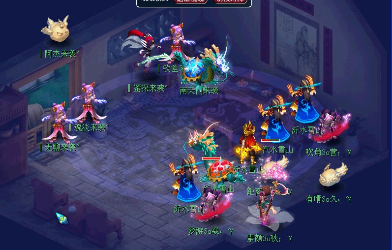 相关文章: 蝴蝶泉VS钓鱼岛:蝴蝶泉胜 双方都是虎阵,钓鱼岛狮驼加双法系的阵容而蝴蝶泉则是双法系双辅助带个方寸。从输出能力来说,因为狮驼的存在明显对人更具威胁,而蝴蝶泉两个魔天宫则是清宝宝好手。不过双方都能够适时控制对方输出点,蝴蝶泉方寸失心封然后小死亡点杀,而钓鱼岛则是狮驼象形直接打断输出节奏,总体来说大家互有攻防,都缺乏一波推的能力。最后一回合,钓鱼岛狮驼点杀蝴蝶泉方寸失败,系统判蝴蝶泉获胜! 沂水雪山VS南天门:南天门胜 [编辑:鸡翅]