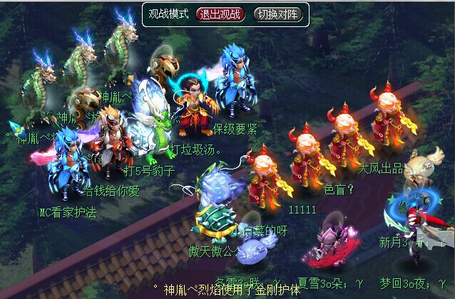 雪山虎阵对清晖园风阵,又见大克。观战方出了一排耐攻童子,打对方BB都是2200起步,非常暴力,LB辅助清BB,尽情压制对战方,清晖园转成炸蓝战术,三条龙一起发力,炸了几回合后,发觉效果不大,又重新卷起来了。此时观战方LB已经集聚了不少战意,配合两条龙,面伤打到对方不要不要的,之后辅助丢破甲,更如入无人之境,胜利唾手可得,恭喜雪山! |
