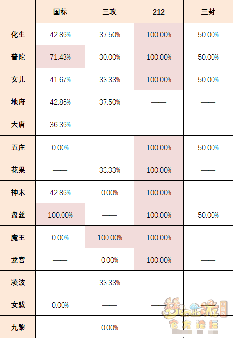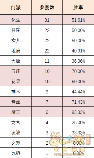 梦幻西游第232届武神坛淘汰赛数据分析:魔王五庄的胜率遥遥领先